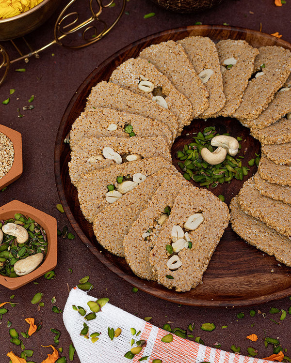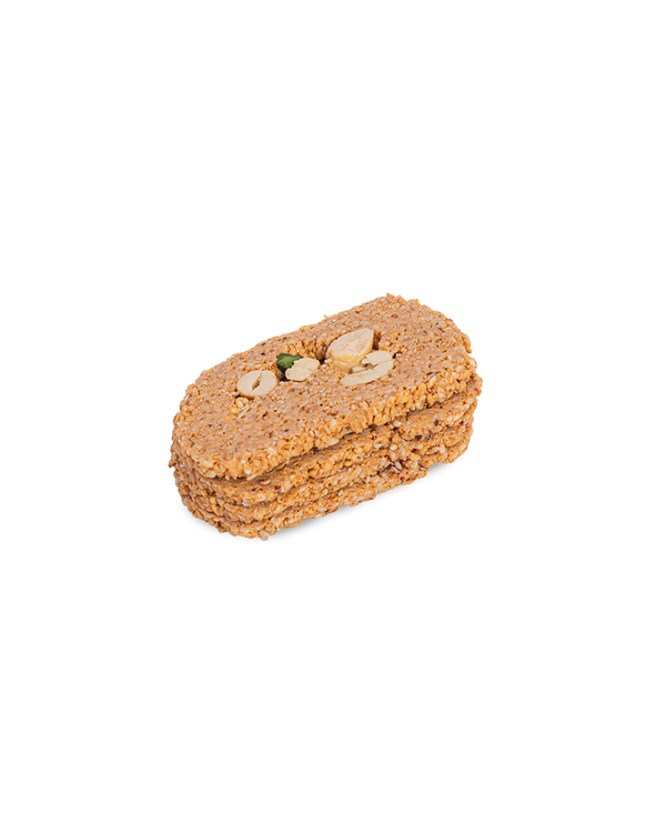 take your tastebuds on a ride of flavours with crunchy flattened piece of absolute wonder sprinkled with sesame seeds and love. A winter specialty made with warm ingredients such as ghee, jaggery(Guud) and sesame(til) these sweet treats.It is a traditional yet healthy Indian snack, mithai. Order now from the legendry Narayan Ji Gajak,for your family and relatives